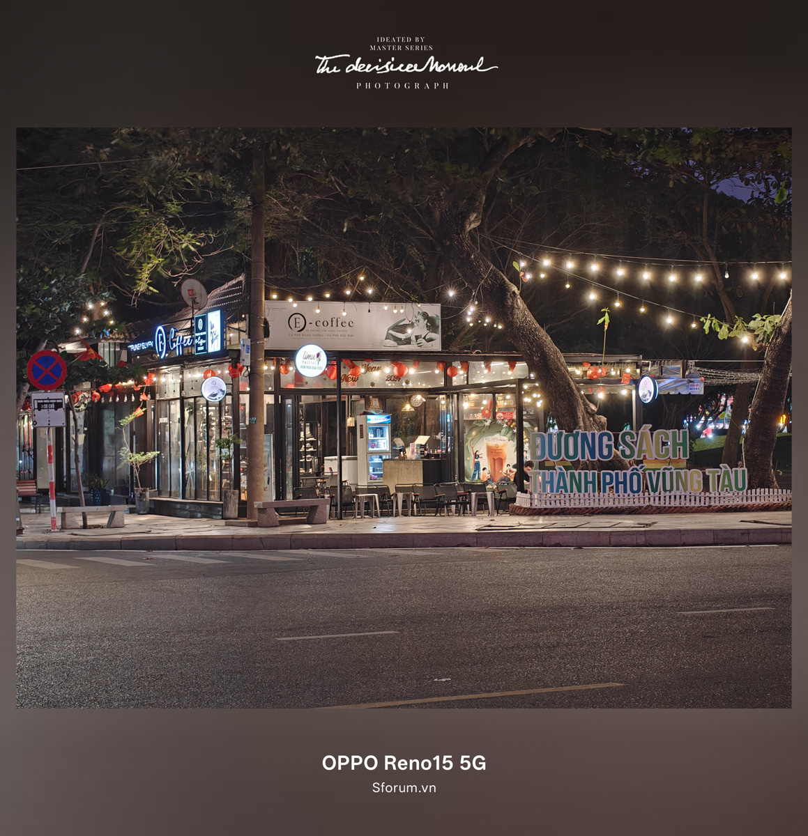 Trước khi lên xe và ra về, mình có chụp nốt một tấm hình thiếu sáng tại lối vào đường sách Vũng Tàu. Có thể thấy dù có rất nhiều ánh đèn song OPPO Reno15 đều kiểm soát chúng khá tốt, không khiến tổng thể bức ảnh bị loá hay cháy sáng quá nhiều. Độ chi tiết trên các tấm biển được tái tạo rất tốt, màu sắc đậm đà chứ không hề bị rửa trôi - một tình trạng khá dễ gặp khi chụp ảnh có nhiều màu sắc trong điều kiện thiếu sáng.