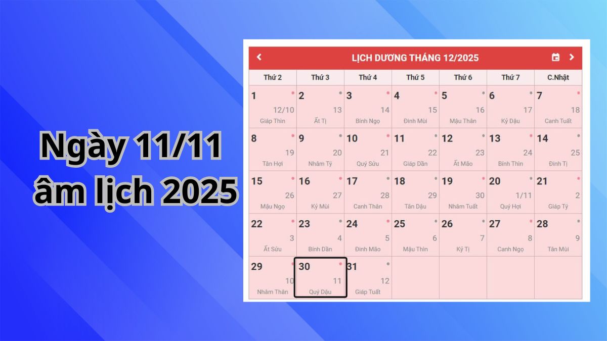 Ngày 11 tháng 11 âm lịch 2025 là ngày bao nhiêu dương lịch?