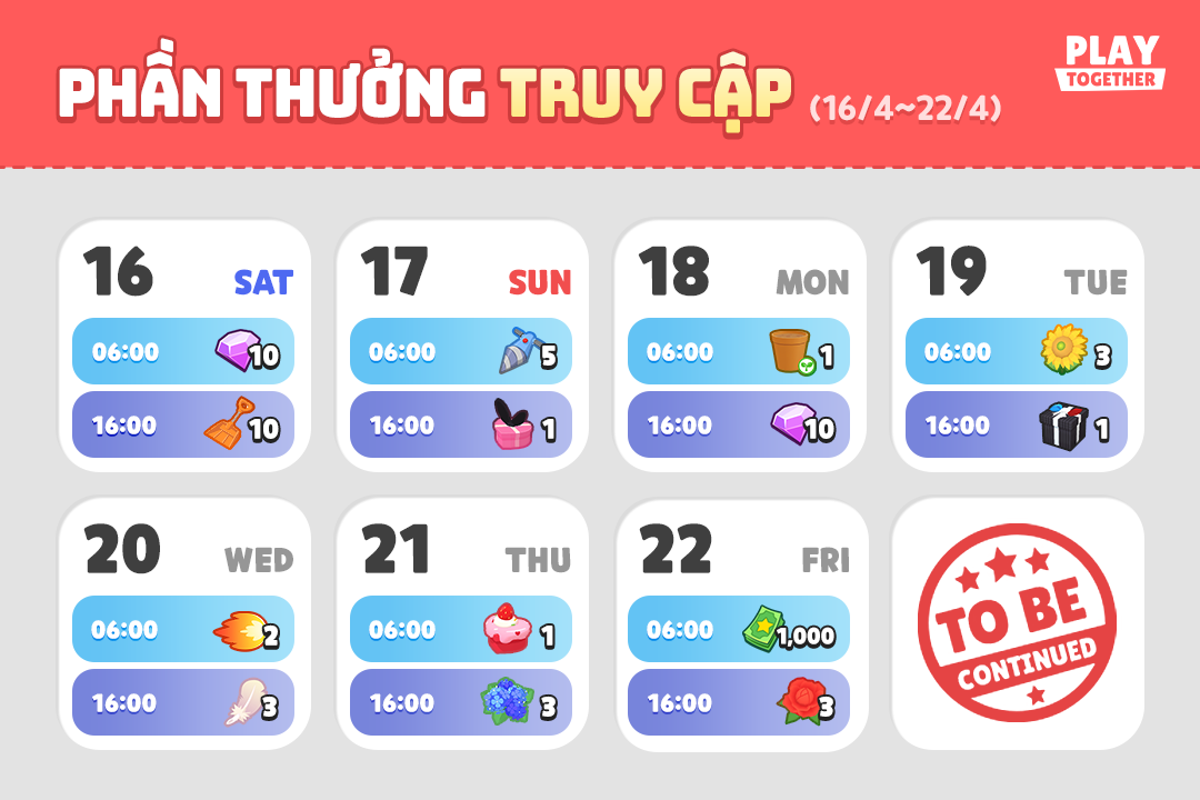 Nhận quà đăng nhập hàng ngày từ Play Together trong ngày 16-22/4