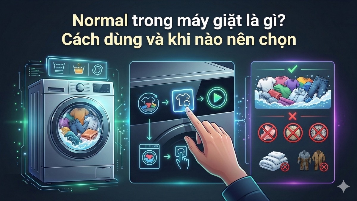 Việc hiểu rõ Normal trong máy giặt là gì không chỉ giúp bạn đánh bay vết bẩn hiệu quả mà còn giữ tốt phom dáng trang phục. Đừng để chiếc máy giặt đắt tiền vô tình làm những bộ đồ yêu thích nhanh sờn cũ chỉ vì chọn sai chương trình.
