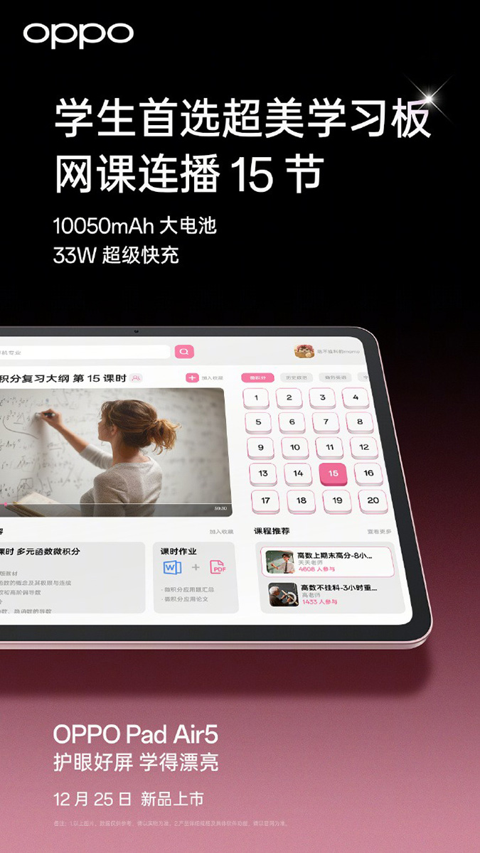 OPPO Pad Air 5 lộ teaser chính thức: Tablet “học từ nhập học đến tốt nghiệp”, pin trâu, màn hình dịu mắt