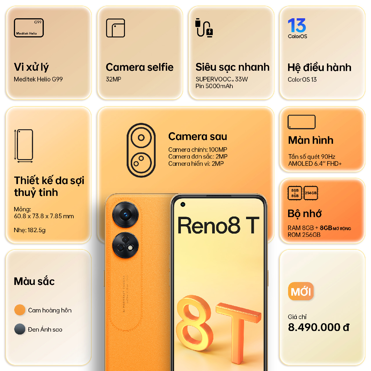 - OPPO Reno8 T 5G 8GB+256GB : 10,990,000 VND