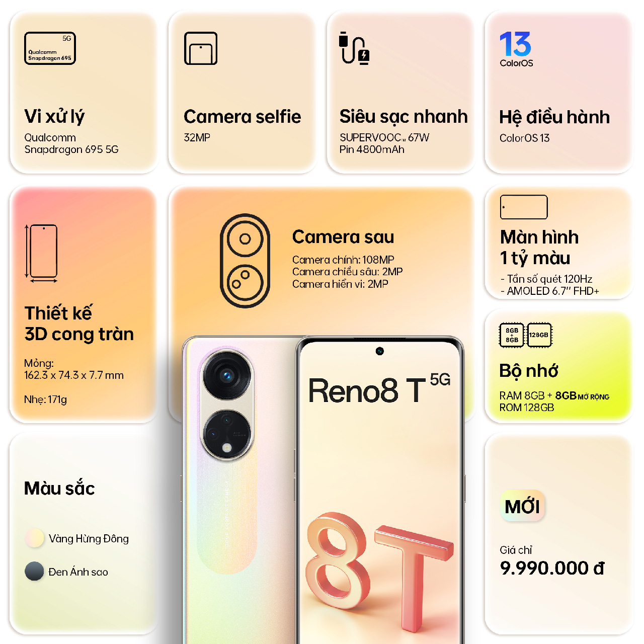 - OPPO Reno8 T 5G 8GB+128GB : 9,990,000 VND