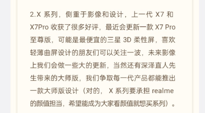 Bên cạnh đó, Realme X7 Pro Extreme Edition sẽ hỗ trợ sạc nhanh 65W và có thể được bán ra với giá khoảng 307 USD (tương đương 7 triệu đồng). Mặt khác, Wei cũng cho hay, Realme sẽ cố gắng để tung ra các model Master Edition bằng cách hợp tác với nhà thiết kế Nhật Bản Fukasawa Naoto.