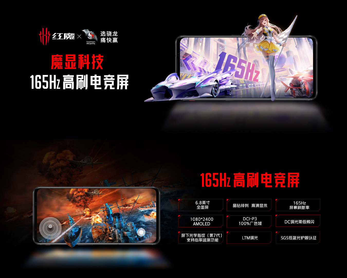 Red Magic 7S được trang bị màn hình AMOLED với kích thước 6.8 inch hỗ trợ độ phân giải Full HD+, LTM, DC dimming và tần số quét 165Hz.