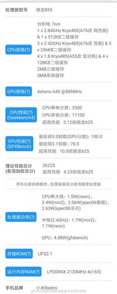 Rò rỉ cũng bao gồm điểm số của Redmi K20 trên các nền tảng điểm chuẩn như Geekbench, GFXBench. Trong khi trước đó không lâu, điện thoại này đã ghé thăm ứng dụng đo hiệu năng tổng thể AnTuTu Benchmark và đạt điểm số cao bất thường, lên tới hơn 450 ngàn điểm.