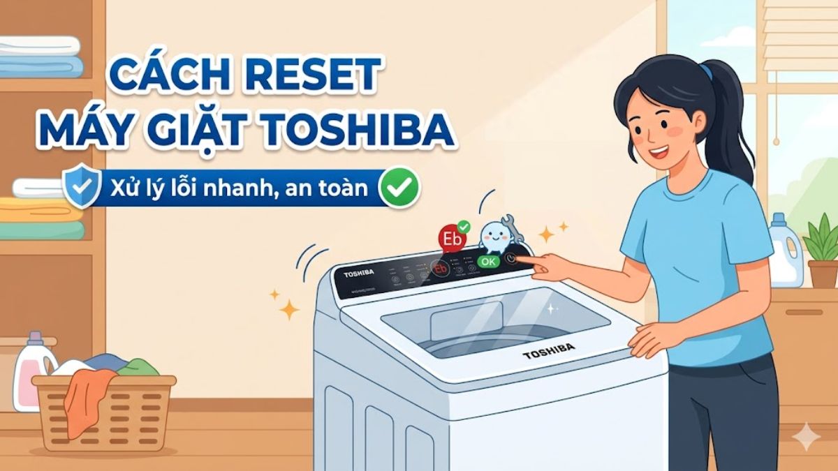 Quá trình reset máy giặt Toshiba sẽ hỗ trợ giải quyết nhanh một số vấn đề thường gặp ngay tại nhà. Khi nắm rõ cách reset, bạn có thể chủ động khắc phục tình trạng bị treo hoặc báo sự cố đơn giản. Nội dung sau sẽ hướng dẫn cài đặt lại từng bước chi tiết, an toàn và dễ áp dụng cho nhiều dòng thiết bị.