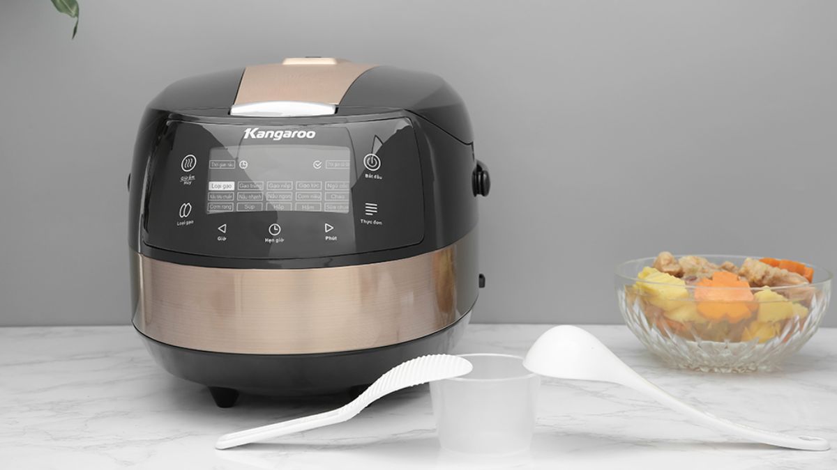 - Nồi cơm điện Kangaroo: Kangaroo có lợi thế về thiết kế hiện đại, nhiều chế độ nấu tự động, hẹn giờ tiện lợi. Phù hợp với người trẻ hoặc gia đình thích sự tiện nghi.