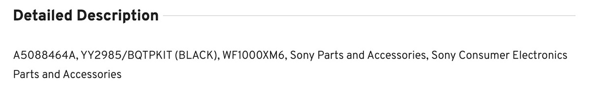 Ngoài ra, trang Encompass Parts vừa bổ sung thông tin về WF-1000XM6 trên trang web của mình. Trang web xác nhận rằng Sony dự định sẽ cung cấp tai nghe WF-1000X thế hệ tiếp theo với hai tùy chọn màu đen và bạc.