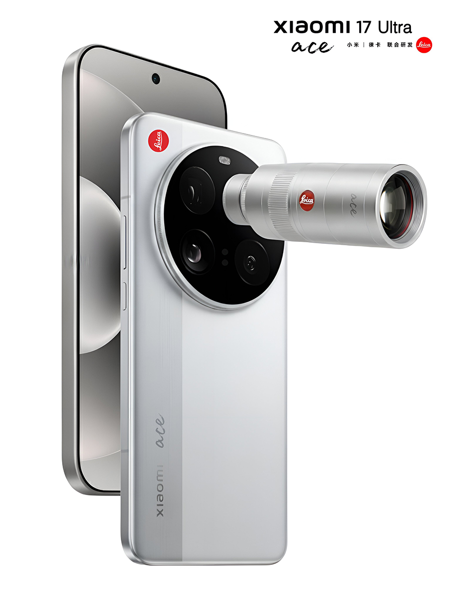 Điểm nhấn trong thiết kế của Xiaomi 17 Ultra còn đến từ logo Leica màu đỏ nổi bật nằm ở góc trên cùng bên trái. Flagship này nhiều khả năng cũng đi kèm các phụ kiện để gắn ống kính rời để cải thiện khả năng zoom.