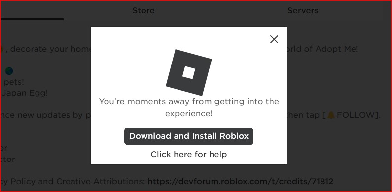 - Bước 3: Nếu chưa cài Roblox, bạn sẽ thấy một cửa sổ popup sẽ hiện ra báo hiệu rằng mình cần tải Roblox. Chọn 'Download and Install Roblox'.
