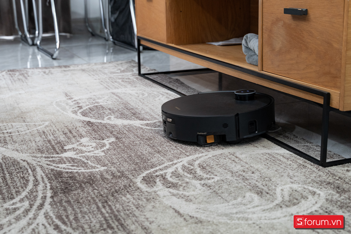 Điểm gây ấn tượng đầu tiên trên N30 Pro Omni nằm ở lực hút lên đến 10.000Pa, thuộc nhóm rất mạnh trong phân khúc. Nhờ đó, robot xử lý tốt bụi mịn, tóc, lông thú cưng và rác vụn bám sâu trong thảm hay khe sàn. Khi di chuyển lên khu vực thảm, máy còn tự động nhận diện và nâng giẻ lau lên 9mm, đồng thời tăng lực hút để làm sạch hiệu quả mà không làm ướt thảm, một chi tiết nhỏ nhưng cực kỳ hữu ích cho nhà có thảm trải sàn.
