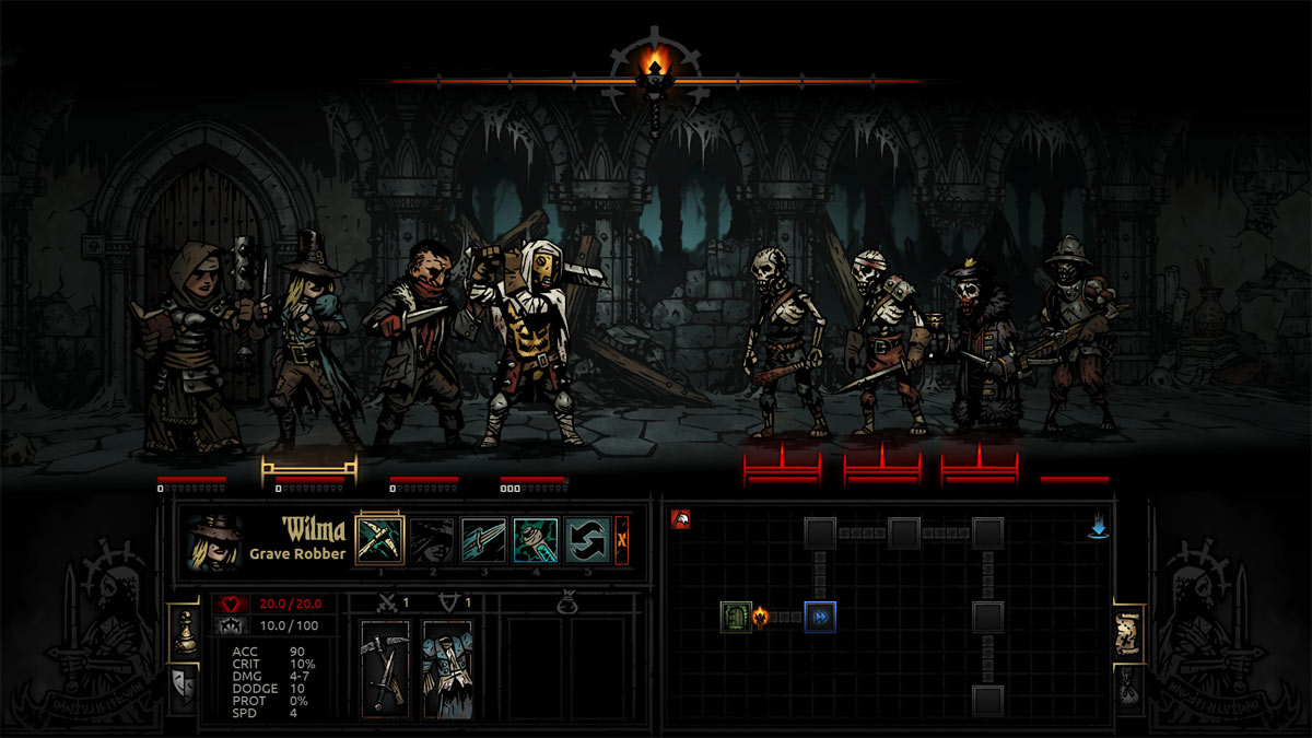 Darkest Dungeon là một trong những tựa game chiến thuật được đánh giá cao khi khắc họa rõ nét những đặc điểm game Roguelike. Trò chơi đưa bạn vào hành trình khám phá những hầm ngục u ám, nơi mỗi quyết định đều có thể dẫn đến cái chết của cả đội.