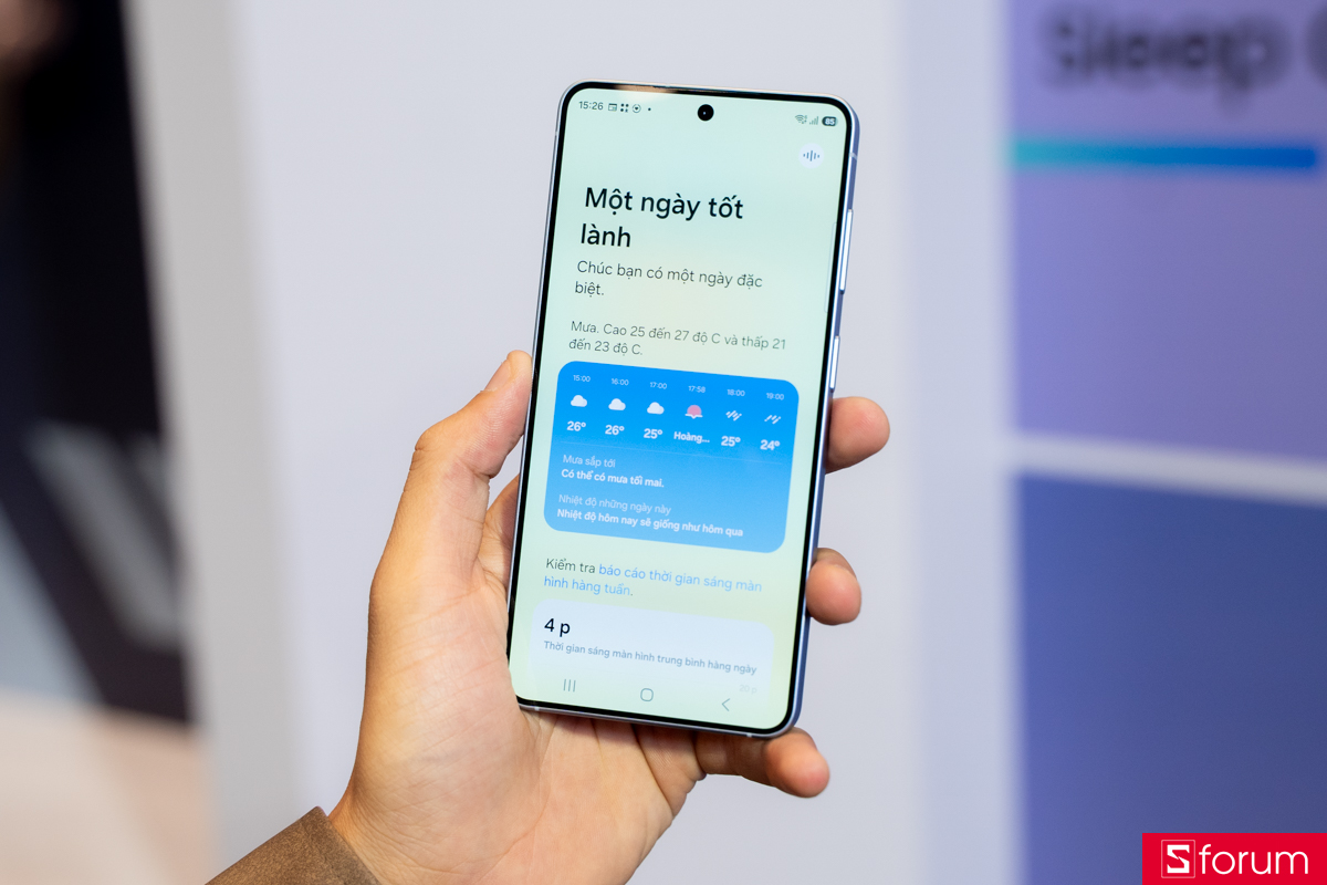 Về kích thước, Galaxy S26 có "số đo 3 vòng" lần lượt là 149.6 x 71.7 x 7.2 mm và nặng 167g, tức dài và rộng hơn so với S25 do sở hữu màn hình lớn hơn. Điện thoại này vẫn tiếp tục sử dụng mặt lưng kính cao cấp và hỗ trợ kháng nước, chống bụi chuẩn IP68, giúp người dùng yên tâm hơn trong quá trình sử dụng.