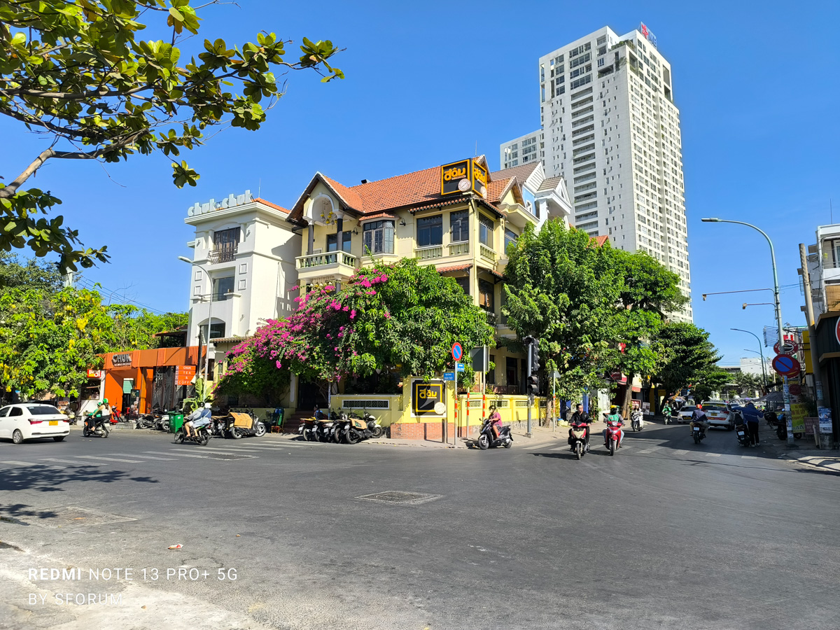 Tiếp theo, bức ảnh mình quán cà phê có bụi hoa giấy dưới đây, có thể thấy Redmi Note 13 Pro Plus sẽ đẩy phần phơi sáng lên một chút nên bức ảnh trông sáng hơn, trong hơn hẳn và màu sắc xử lý rực rỡ hơn, nhất là phần nền trời xanh hơn, màu xanh lá của lá cây cũng trông nổi bật hơn hẳn.
