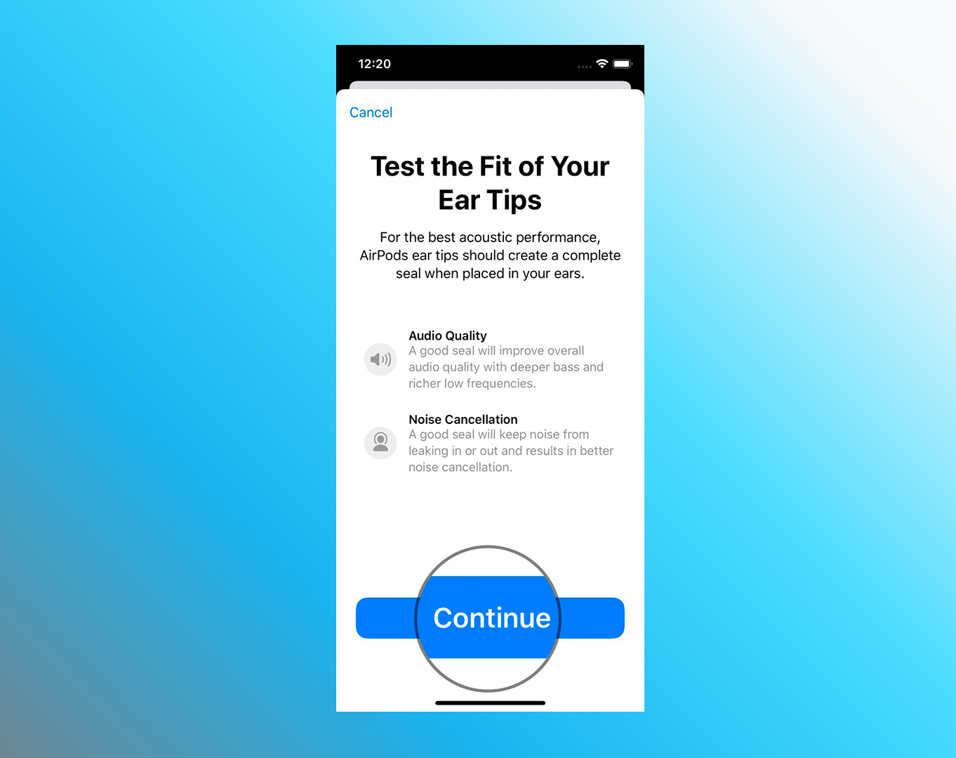 Bước 3: AirPods sẽ gửi cho bạn nghe một đoạn âm thanh và sử dụng âm thanh đó để xác định xem kích thước đệm tai có đang phù hợp với bạn không.