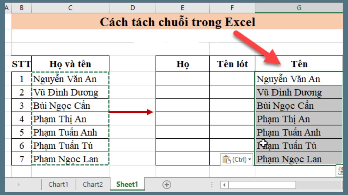 Cách tách cột trong Excel bằng Flash Fill (Ctrl + E)