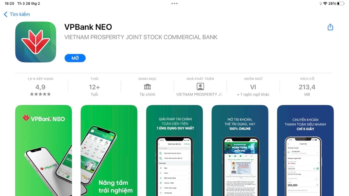 Tải VPBank NEO: Ngân hàng số đầu tiên của VPBank
