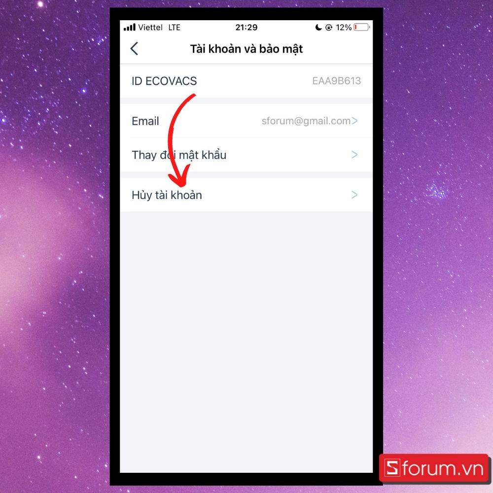 Bước 4: Tiếp tục chọn Hủy tài khoản.