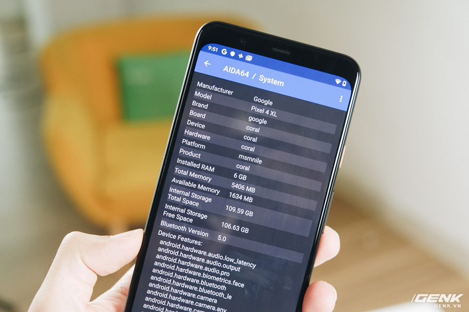 Bên trong, sức mạnh xử lý của máy được cung cấp bởi con chip Snapdragon 855 đi kèm dung lượng RAM 6GB và bộ nhớ trong 128GB. Nhìn chung, Pixel 4 XL sở hữu cấu hình mạnh, nhưng không phải mạnh nhất thế giới Android. Smartphone đầu bảng đến từ Samsung, OnePlus, Xiaomi hay ASUS có dung lượng RAM lớn hơn, dung lượng pin cũng cao hơn.