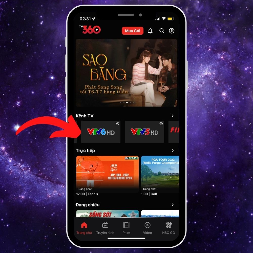 Bước 4:Bạn trở lạitrang chủ. Chọn vào kênh truyền hình có trực tiếp các môn thể thao yêu thích.
