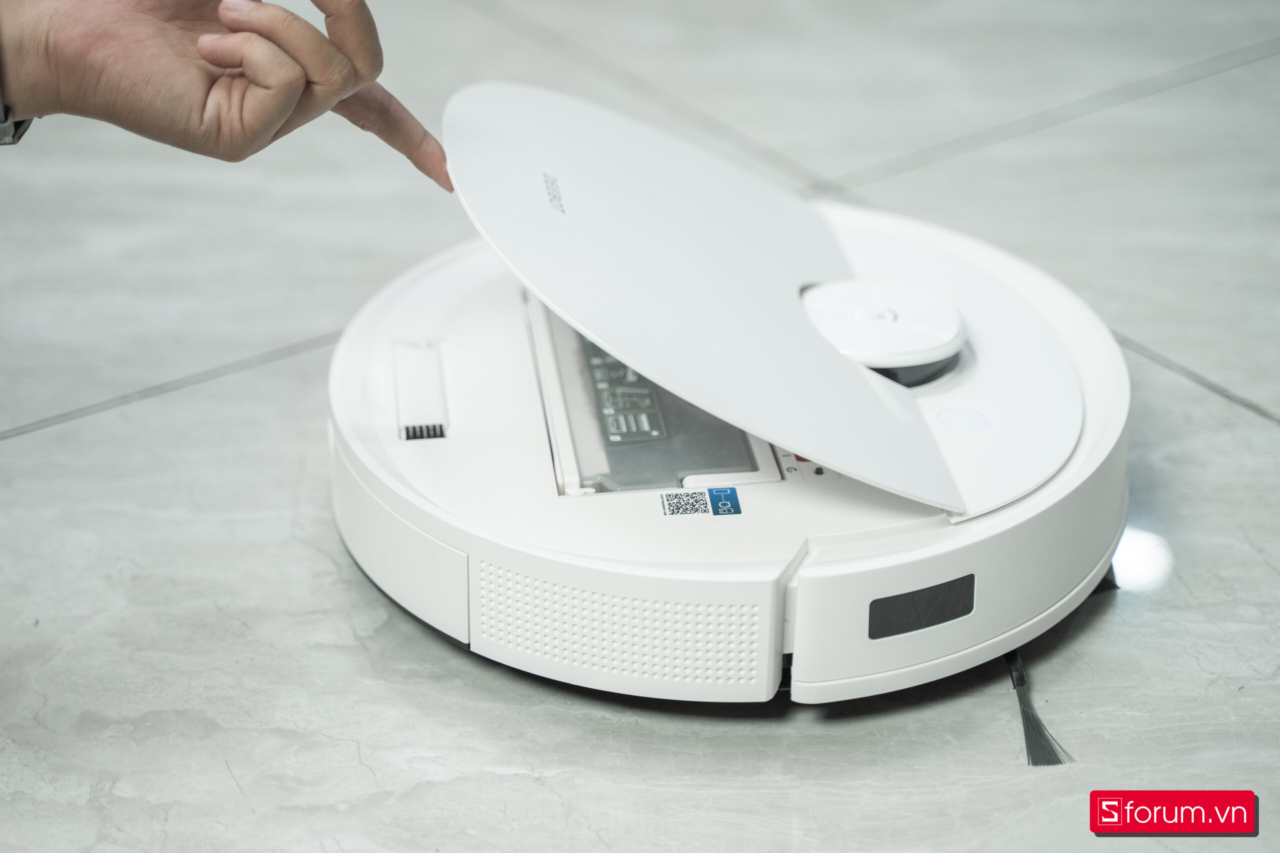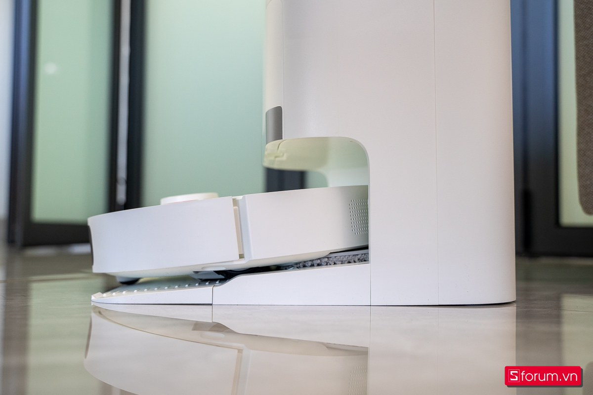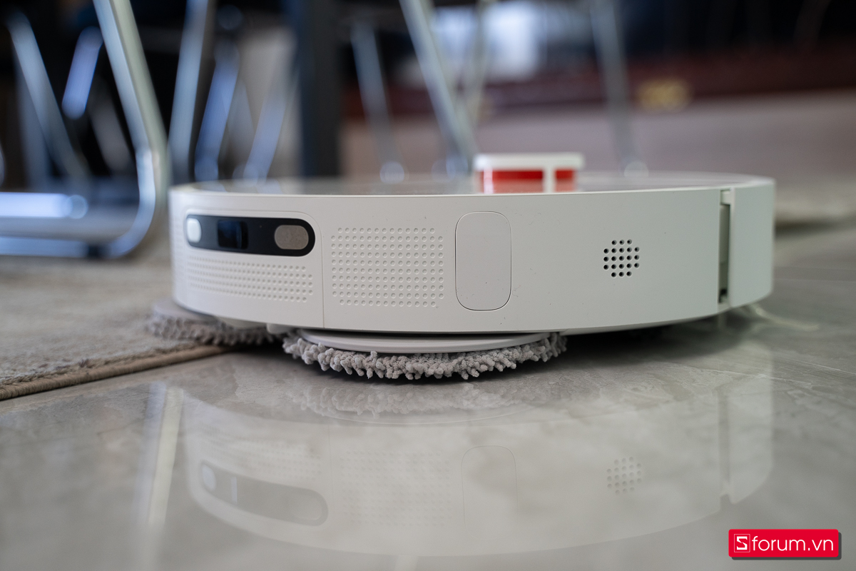 Điểm ấn tượng đầu tiên là lực hút lên đến 6000 Pa, mạnh gần gấp đôi nhiều mẫu robot phổ thông. Nhờ vậy, máy xử lý tốt bụi mịn, tóc rụng, vụn thức ăn hay rác nhỏ trong các khe sàn. Kết hợp với công nghệ lau xoay 360 độ Turbo cải tiến, robot không chỉ lau mà còn tạo lực chà sát, giúp sàn sạch kỹ hơn, đặc biệt ở khu vực bếp hay hành lang.