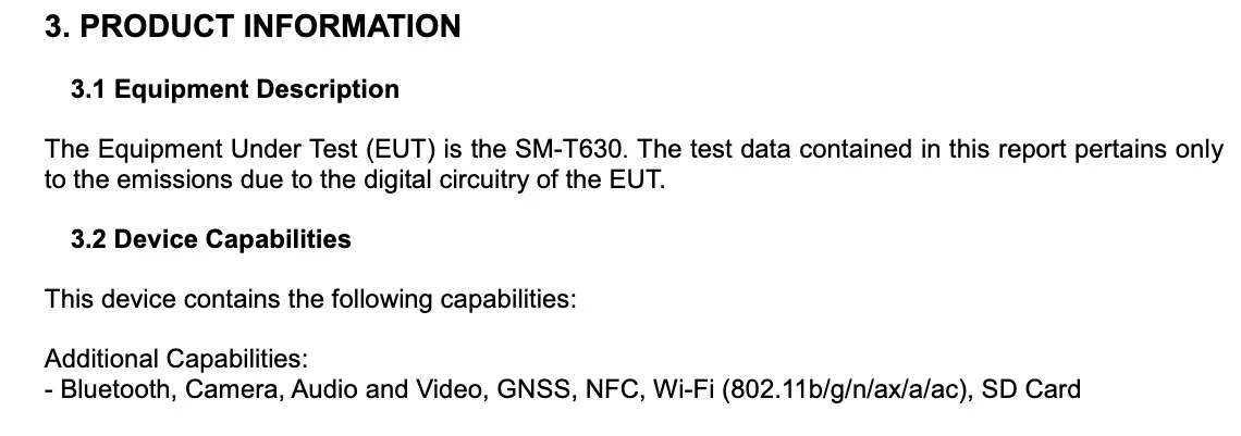 Chiếc máy cũng sẽ hỗ trợ mở rộng không gian lưu trữ thông qua khe đọc thẻ nhớ microSD. Ngoài ra cơ sở dữ liệu cũng tiết lộ là máy tính bảng đang được thử nghiệm với hai củ sạc với mã lần lượt là EP-TA200 và EP-TA800.