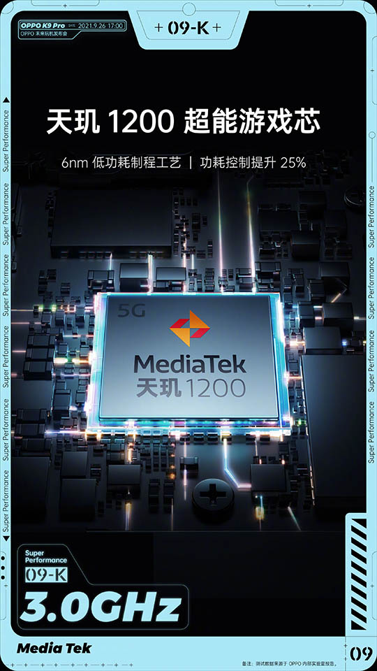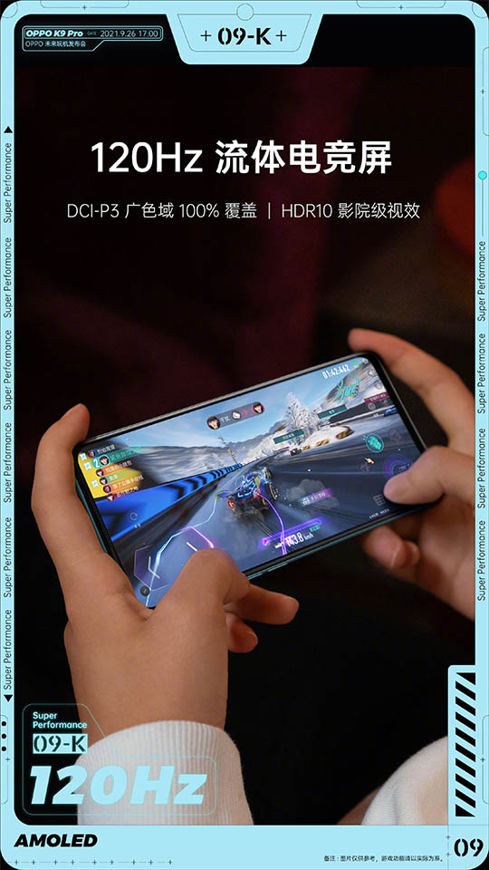 Theo trang Gizmochina, các tấm poster của OPPO K9 Pro tiết lộ rằng nó sẽ được trang bị tấm nền AMOLED với thiết kế đục lỗ. Nó sẽ hỗ trợ tốc độ làm tươi 120Hz, HDR10 và 100% gam màu DCI-P3. Bên trong, nó có chipset MediaTek Dimensity 1200 5nm mạnh mẽ, hứa hẹn xử lý tốt mọi tác vụ hàng ngày của người dùng.