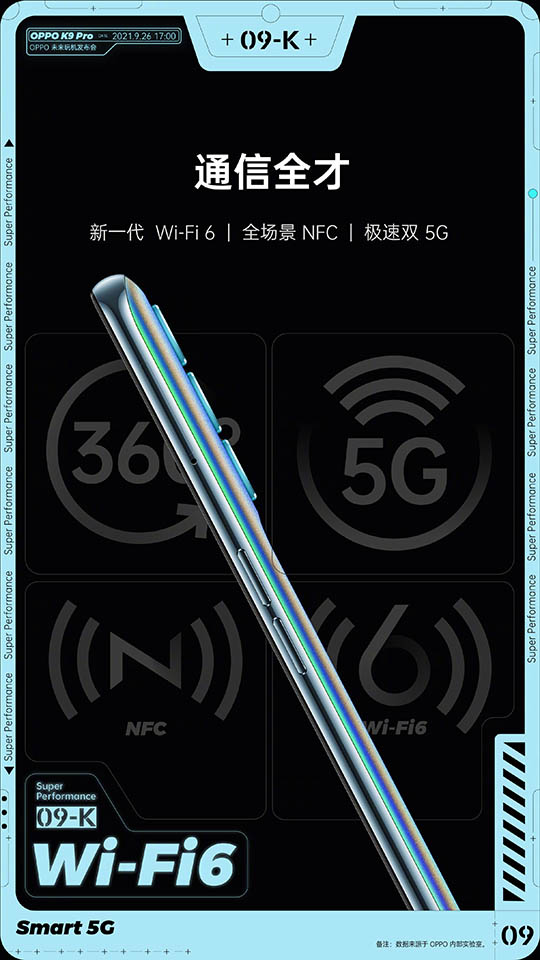 Mới đây nhất, công ty Trung Quốc này vừa lên Weibo để chia sẻ một số poster chính thức về OPPO K9 Pro, qua đó xác nhận các tính năng chính của sản phẩm.