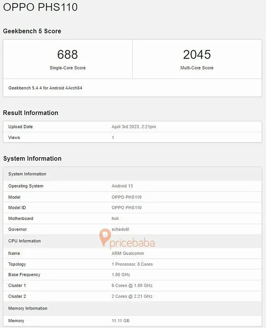 Di động tầm trung sắp tới của OPPO được danh sách Geekbench tiết lộ dùng chip Snapdragon 695, chạy trên hệ điều hành Android 13 và có pin 5,000 mAh. Máy sẽ có màn hình đục lỗ bắt mắt ở mặt trước, nút nguồn nằm ở cạnh phải, tích hợp cảm biến vân tay và nút chỉnh âm lượng ở bên trái. OPPO trang bị cho điện thoại cổng USB type-C, jack cắm tai nghe 3.5mm và loa ngoài ở cạnh dưới. Cạnh trên chứa cổng hồng ngoại IR blaster và micrô phụ.
