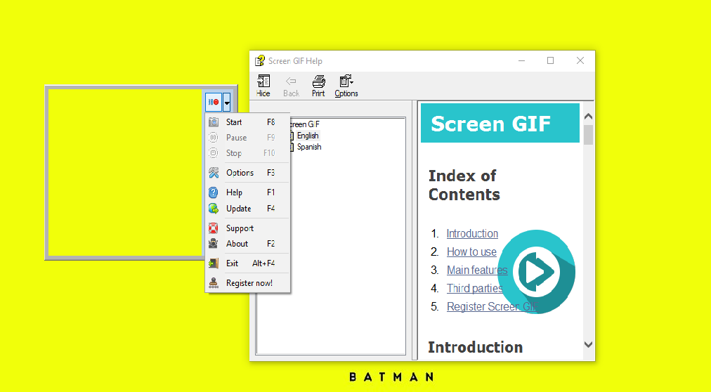 Screen GIF là phần mềm tạo hình ảnh động thông dụng trên máy tính. Cho phép bạn có thể quay màn hình ảnh động định dạng GIF trực tiếp trên màn hình chính bất kỳ vị trí nào, có thể quay màn hình game, phim, hướng dẫn.v.v...sau đó lưu trực tiếp bằng 1 hình ảnh động GIF với tốc độ tạo cực kỳ nhanh chóng.