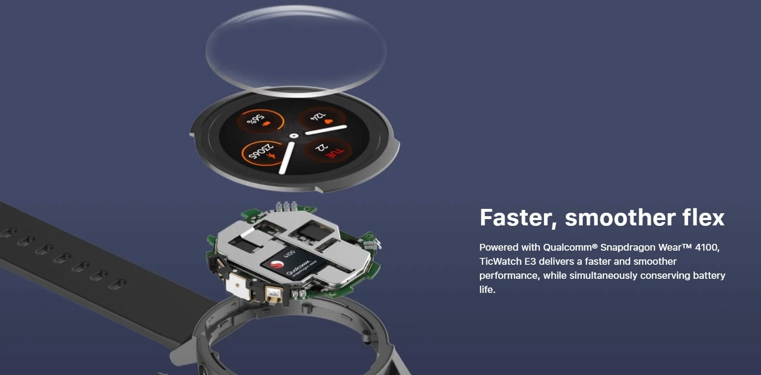 Đồng hồ được trang bị bộ vi xử lý Snadragon 4100 giống như trên TicWatch 3 Pro và TicWatch 3 Pro LTE, đi kèm với đó là 1GB RAM và 8GB bộ nhớ trong.