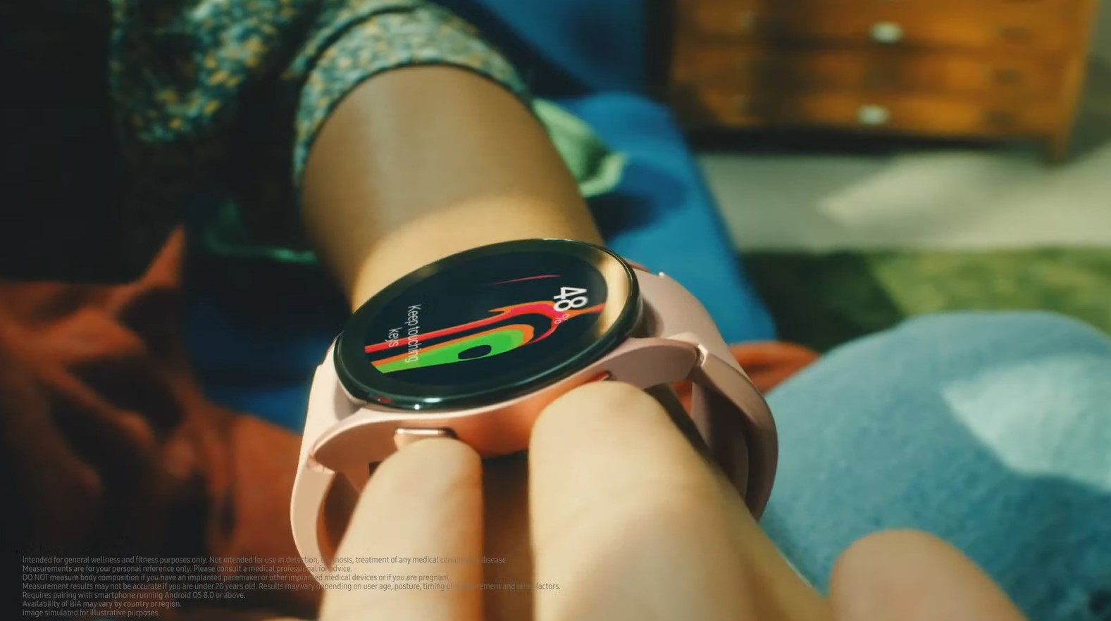 Với việc tích hợp BIA, Galaxy Watch4 series có thể dựa trên trở kháng sinh học của cơ thể để phân tích lượng mỡ, cơ, nước và các thành phần mô khác trong cơ thể để phân tích chính xác hơn tình trạng sức khỏe của người dùng. Để đo lượng mỡ thừa và các chỉ số cơ thể, người dùng cần chạm hai đầu ngón tay lên hai nút bấm trên đồng hồ, một dòng điện sẽ chạy từ tay đeo đồng hồ sang tay còn lại để đo được trở kháng sinh học của cơ thể.