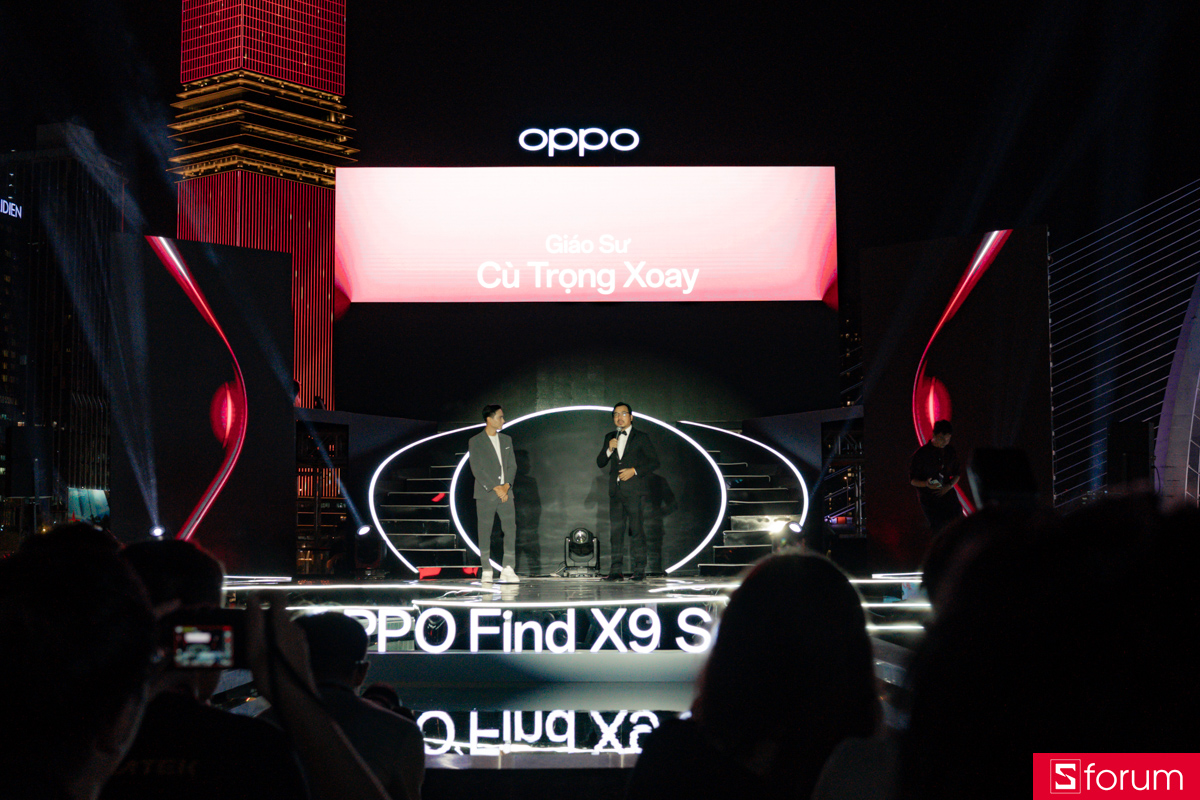 Đúng 16:45, tàu khởi hành rời bến, di chuyển trên sông Sài Gòn tạm neo tại khu vực đối diện công viên sông Bạch Đằng, thu hút nhiều sự chú ý từ người dân bên đường. Và khi hoàng hôn buông xuống, màn ra mắt Find X9 Series chính thức bắt đầu với phần trình diễn công nghệ kết hợp giữa Giáo sư Xoay và Lê Dương Bảo Lâm, mang lại nhiều tiếng cười và sự hứng thú.