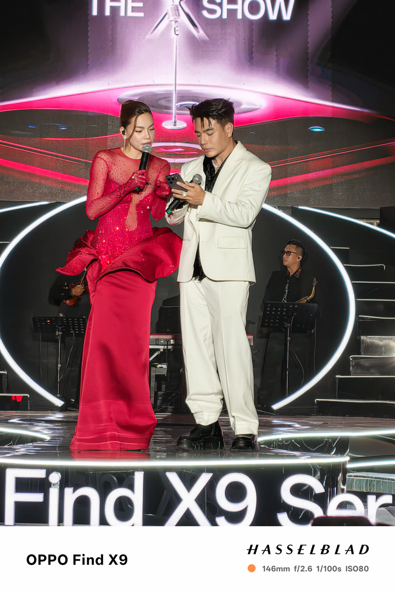 Đỉnh điểm của đêm tiệc là màn trình diễn của Hồ Ngọc Hà cùng 3 ca khúc sôi động, trước khi OPPO công bố giá bán chính thức và ca sĩ Quốc Thiên khép lại chương trình bằng những bản hit quen thuộc.