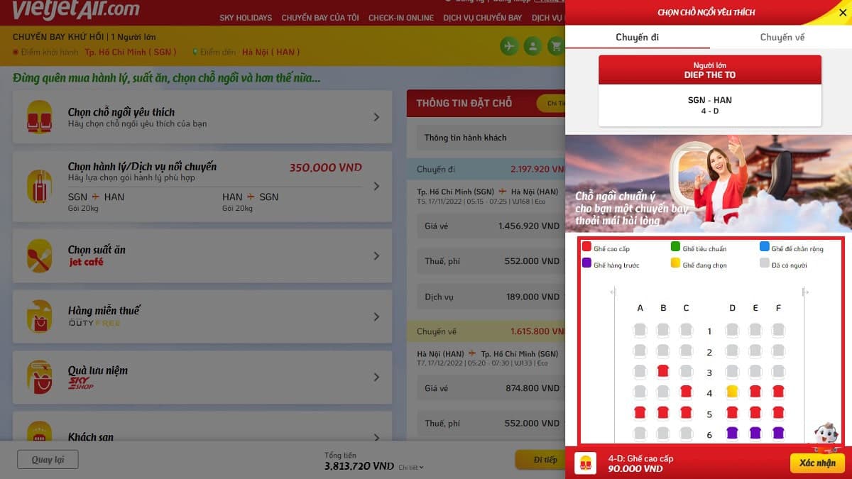 - Chọn món ăn yêu thích của bạn cho chuyến đi và chuyến về (nếu vé khứ hồi).