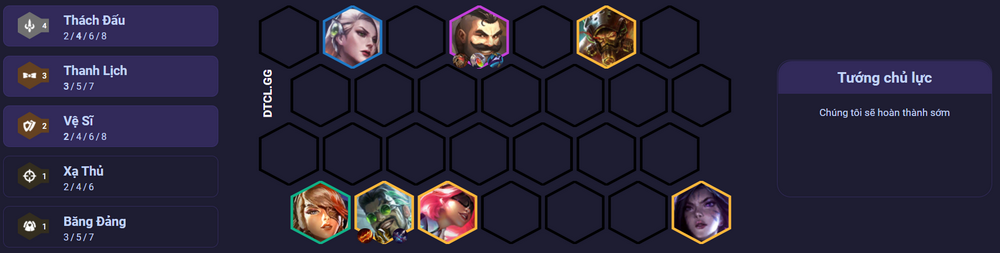 Nếu đưa được Morgana hoặc Gnar lên 3 sao, hãy ưu tiên lắp cho họ các trang bị phòng thủ đơn thuần như: Giáp Gai, Vuốt Rồng, Quyền Năng Khổng Lồ và Dây Chuyền Chuộc Tội. Có thể cân nhắc thêm các trang bị hỗ trợ cho Seraphine và Senna với Quỷ Thư và Shojin.