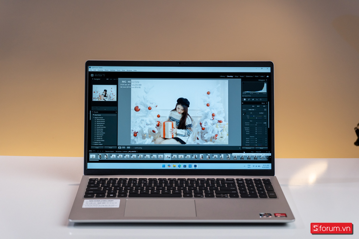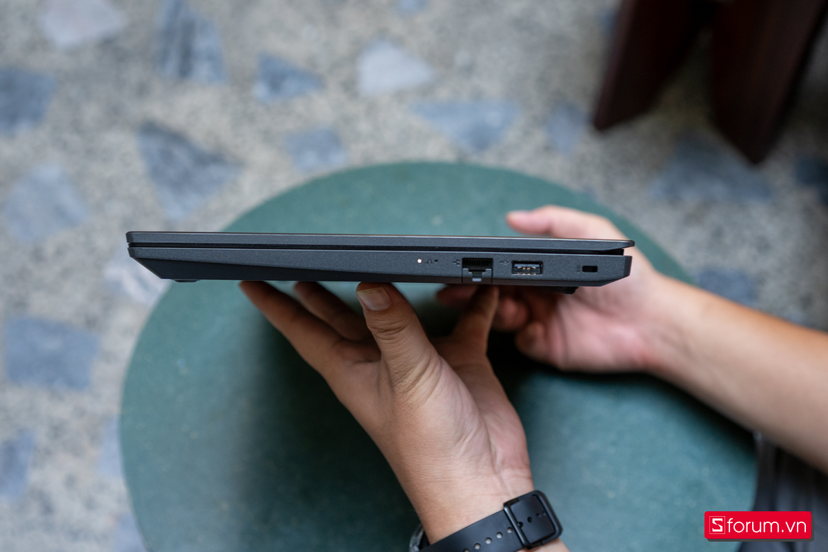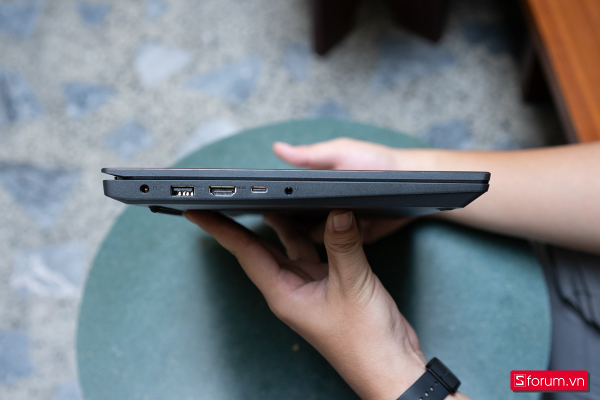 Máy có trọng lượng khoảng 1.66 kg, không quá nặng so với kích thước tổng thể. Độ mỏng 17.5 mm giúp máy nhìn gọn gàng hơn so với nhiều mẫu laptop 15.6 inch truyền thống.