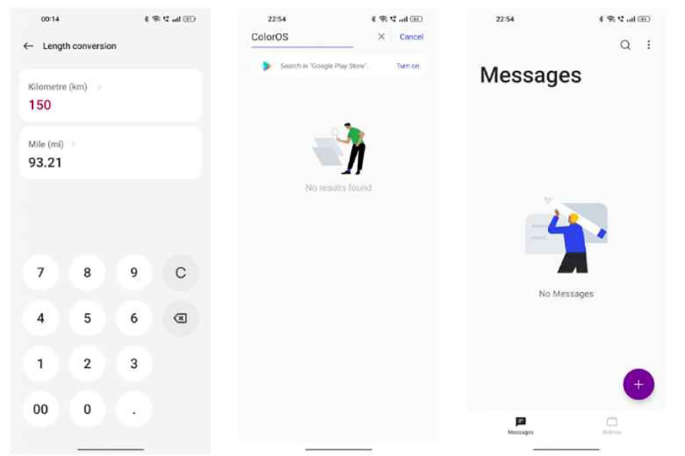 Giao diện ColorOS 13 tuân theo một bố cục kiểu thẻ. Ứng dụng cài đặt và ứng dụng của bên thứ nhất đi kèm các thẻ có kích thước khác nhau hiển thị thông tin dựa trên loại nội dung. Cuối cùng, giao diện người dùng này có các hình minh họa trạng thái tuyệt đẹp trên toàn bộ phần mềm, mang đến một cái nhìn độc đáo.