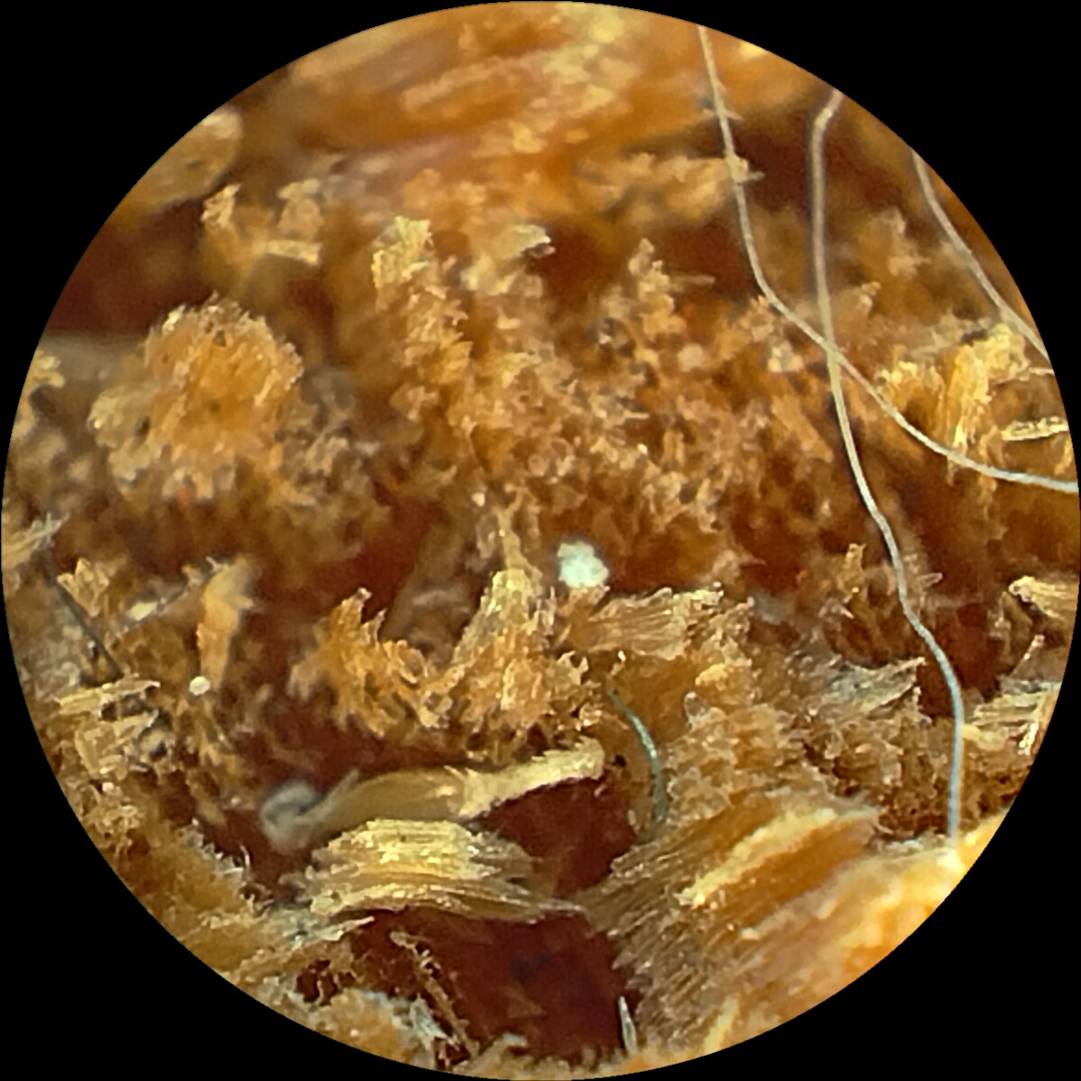 Tiếp tục là ảnh chụp sợi tóc của mình, soi kĩ thì thấy tóc mình không hẳn là một màu đen mà hơi nâu nâu một chút, nhìn bằng mắt thường chúng ta thấy tóc trông mỏng manh đúng không? Nhưng qua kính hiển vi của OPPO Reno8 T 5G thì nhìn như một cây cột vậy cứng cáp, vững chắc vô cùng.