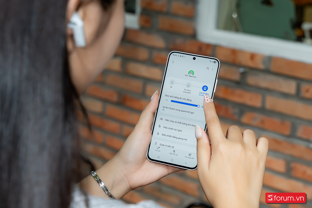 Một yếu tố khác mình đánh giá cao trên Galaxy Buds3 FE chính là sự hỗ trợ của loạt tính năng Galaxy AI. Nhờ đó mà bạn có thể điều khiển tai nghe này bằng giọng nói, tìm kiếm nhanh hoặc thực hiện các tác vụ cơ bản mà không cần chạm vào điện thoại. Việc này mang lại sự tiện lợi trong nhiều tình huống, từ khi bận tay cho đến lúc đang di chuyển.