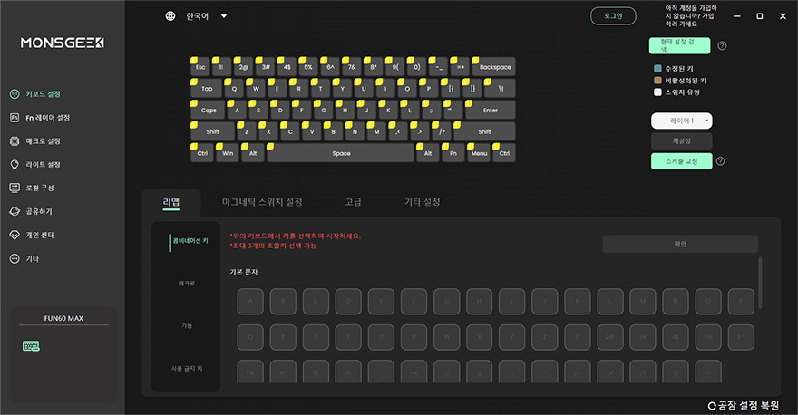 Bàn phím hỗ trợ nhiều chế độ LED và có thể chỉnh nhanh bằng tổ hợp Fn mà không cần phần mềm. Với nhu cầu nâng cao, phần mềm đi kèm cho phép tùy chỉnh thêm như macro, key mapping và một số thiết lập liên quan đến switch từ tính.