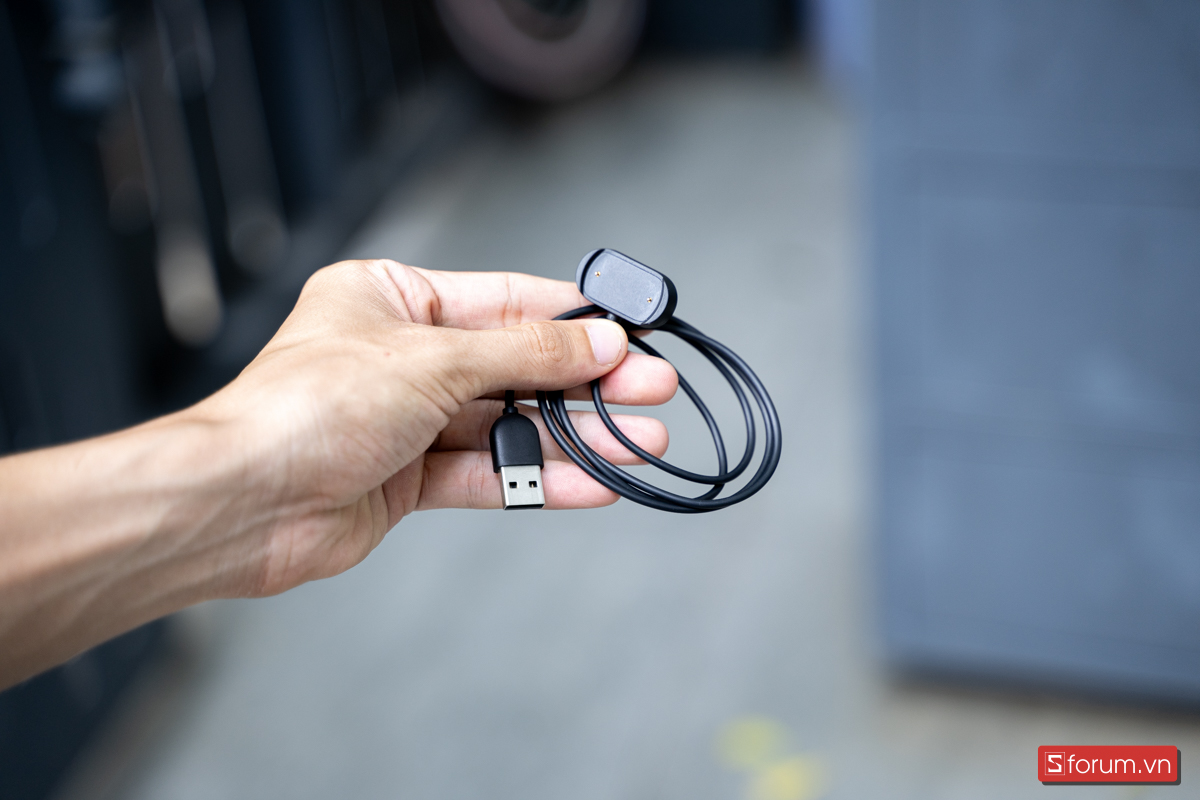 Về mặt phụ kiện thì không có gì quá nổi bật, trong hộp chỉ có mỗi dây sạc nam châm thường thấy khi mua smartwatch.