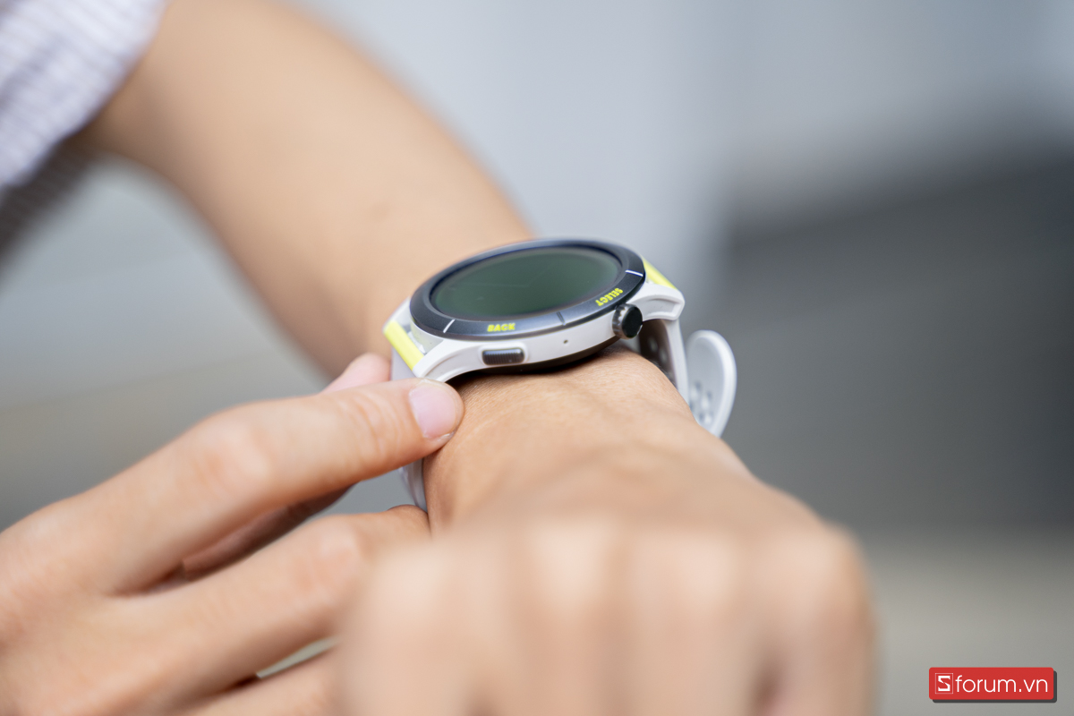 Cạnh phải của đồng hồ là nơi đặt hai phím, tròn có thể xoay, thao tác như một phím menu, nút bấm dài là nút bấm quay trở lại hay vào các chế độ tập luyện (các bạn có thể tuỳ biến hai phím này bằng app hay trên đồng hồ).