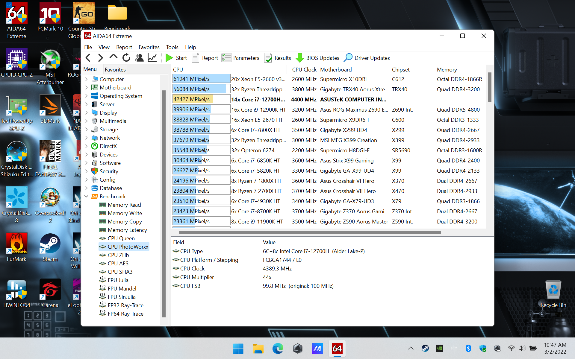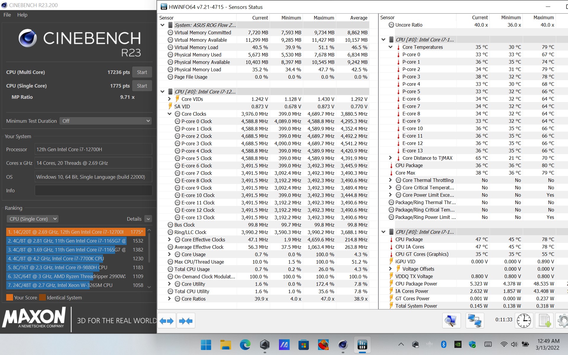 Điểm số CPU Profile của Intel Core i7-12700H trên Flow Z13 khá tốt với gần 8000, một con số trung bình, số điểm cao nhất của Core i7-12700H cao nhất vào khoảng 8500 điểm.