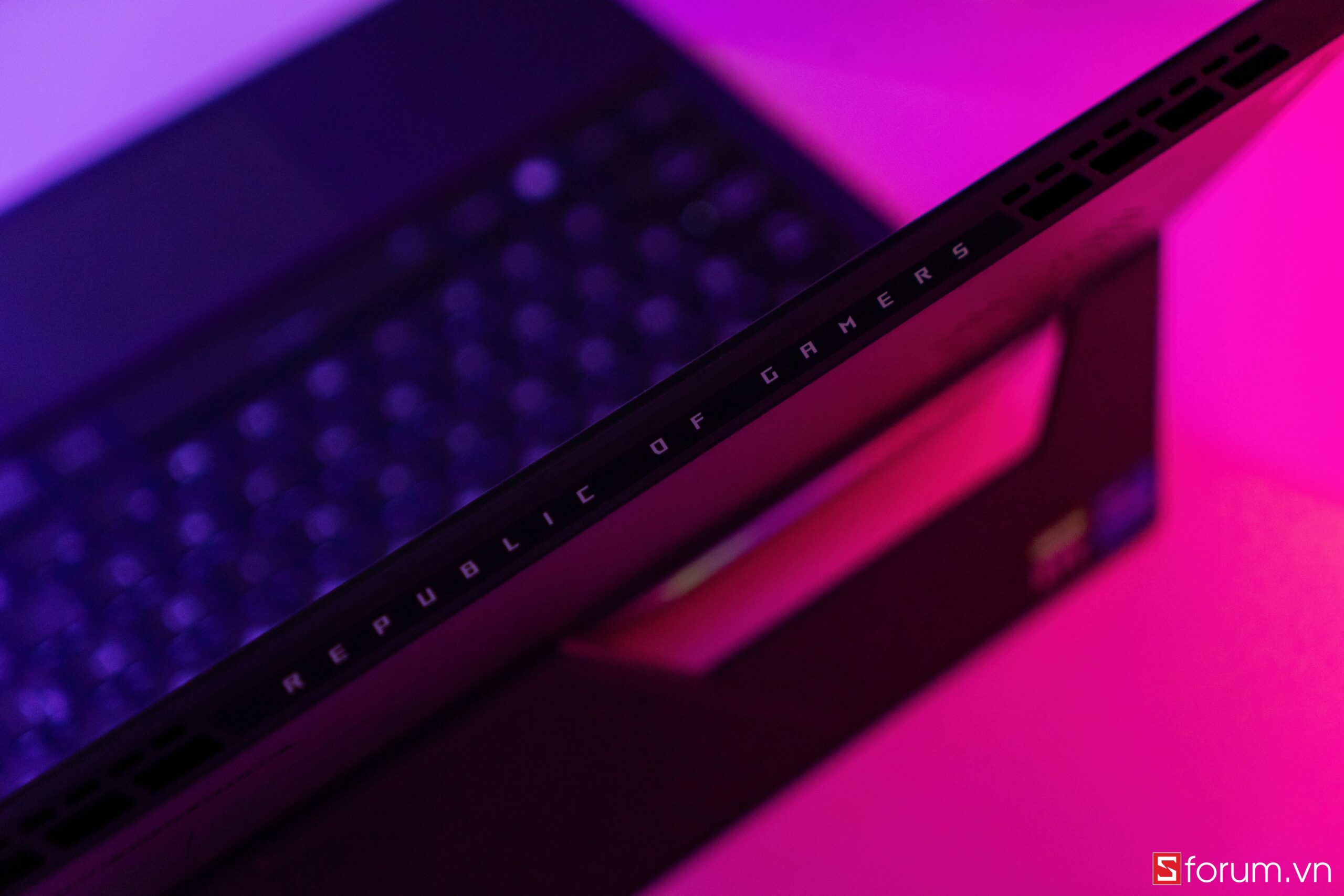 Cạnh trên là tên thương hiệu đầy đủ của ROG - Republic of Gamers cùng hai khe tản nhiệt hai bên.