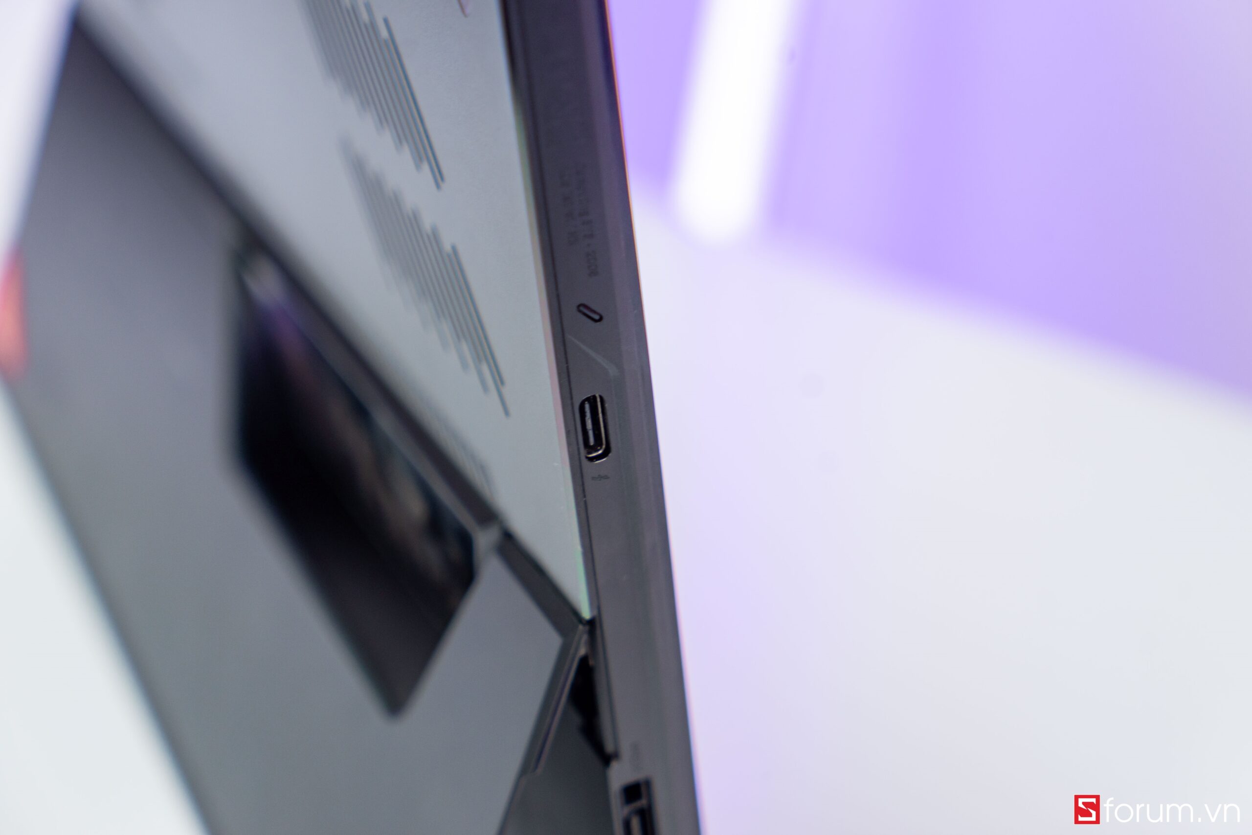 Cạnh trái màn hình sẽ là USB-C (có hỗ trợ Thunderbolt 4, DisplayPort 1.4, Power Delivery) và cổng kết nối XG Mobile (hỗ trợ DisplayPort 1.4, G-Sync và sạc PD). Ngoài ra, máy cũng hỗ trợ khe cắm MicroSD phía trong của chân dựng giúp bạn lưu trữ game và ứng dụng thoải mái hơn.