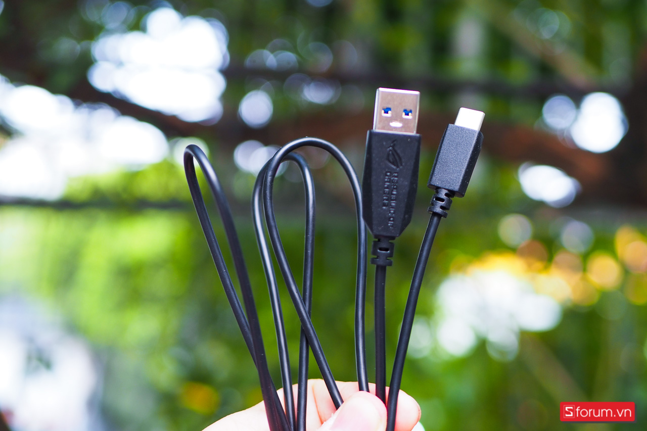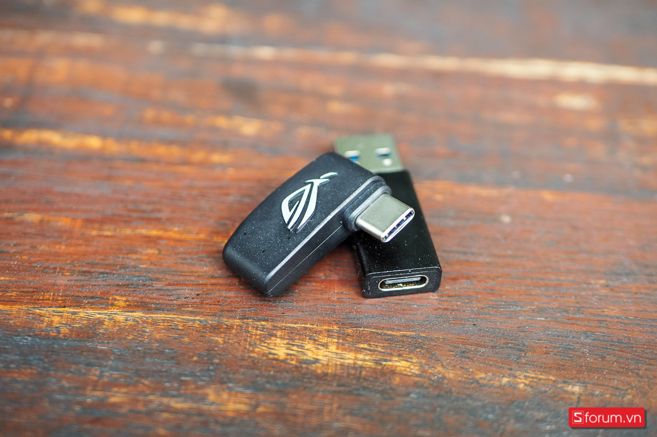 Ngoài ra ASUS còn tặng kèm thêm đầu chuyển USB-C sang USB-A cho các thiết bị không có cổng USB-C, dây cáp USB-A sang USB-C để sạc tai nghe.
