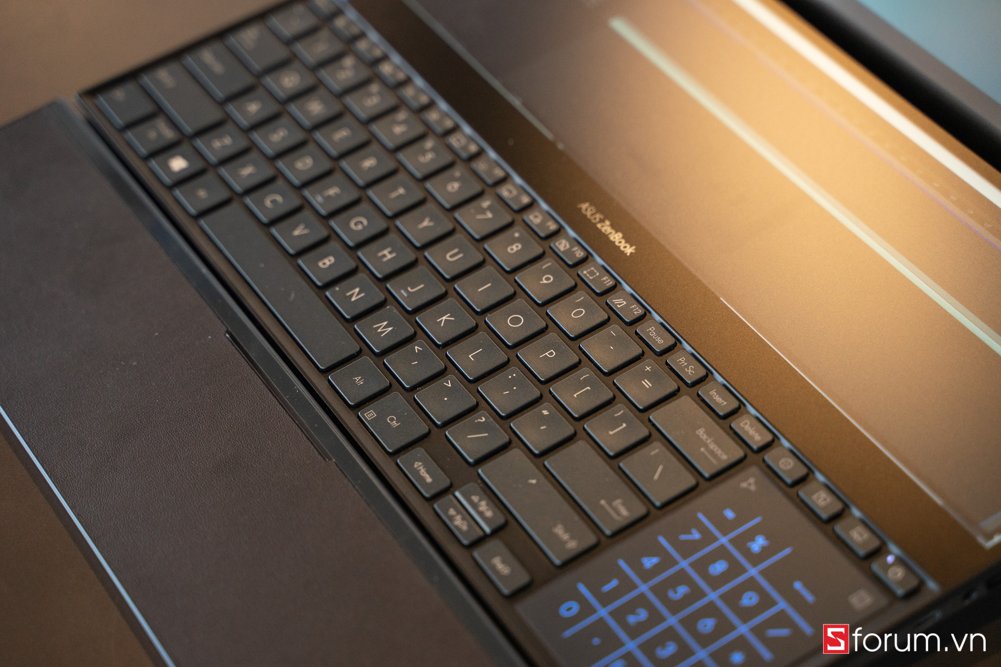 Một thiết kế đặc biệt khác của ZenBook Pro Duo chính là nhà sản xuất đã quyết định đặt phần TouchPad ở bên phải của bàn phím thay vì ở dưới như thường lệ. Hơn nữa, người dùng có thể bật chế độ phím số được tích hợp ở TouchPad để dễ dàng sử dụng như bàn phím thông thường.