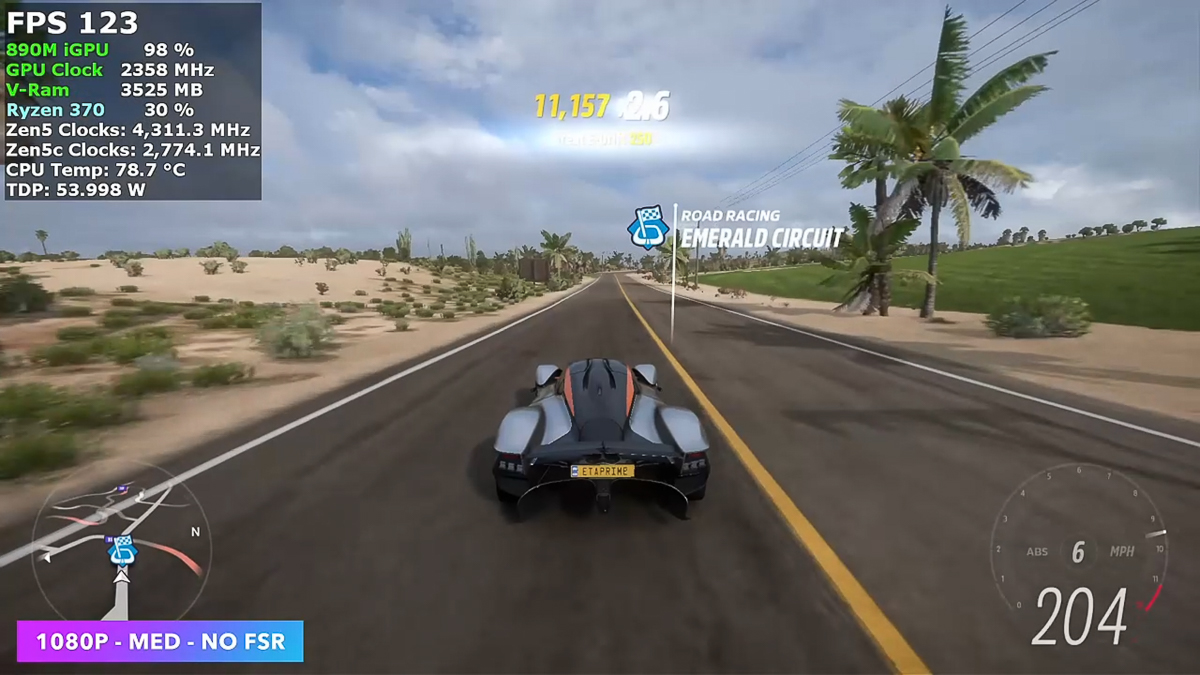 Với tựa game Forza Horizon 5, mình chỉ để cài đặt Medium ở cùng độ phân giải Full HD nhưng tính năng FSR không được bật. Kết quả cho thấy FPS luôn dao động trong ngưỡng từ 105 cho đến 131. Trải nghiệm chơi tựa game này tổng thể rất ổn áp và không gặp vấn đề gì.